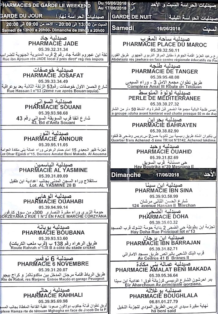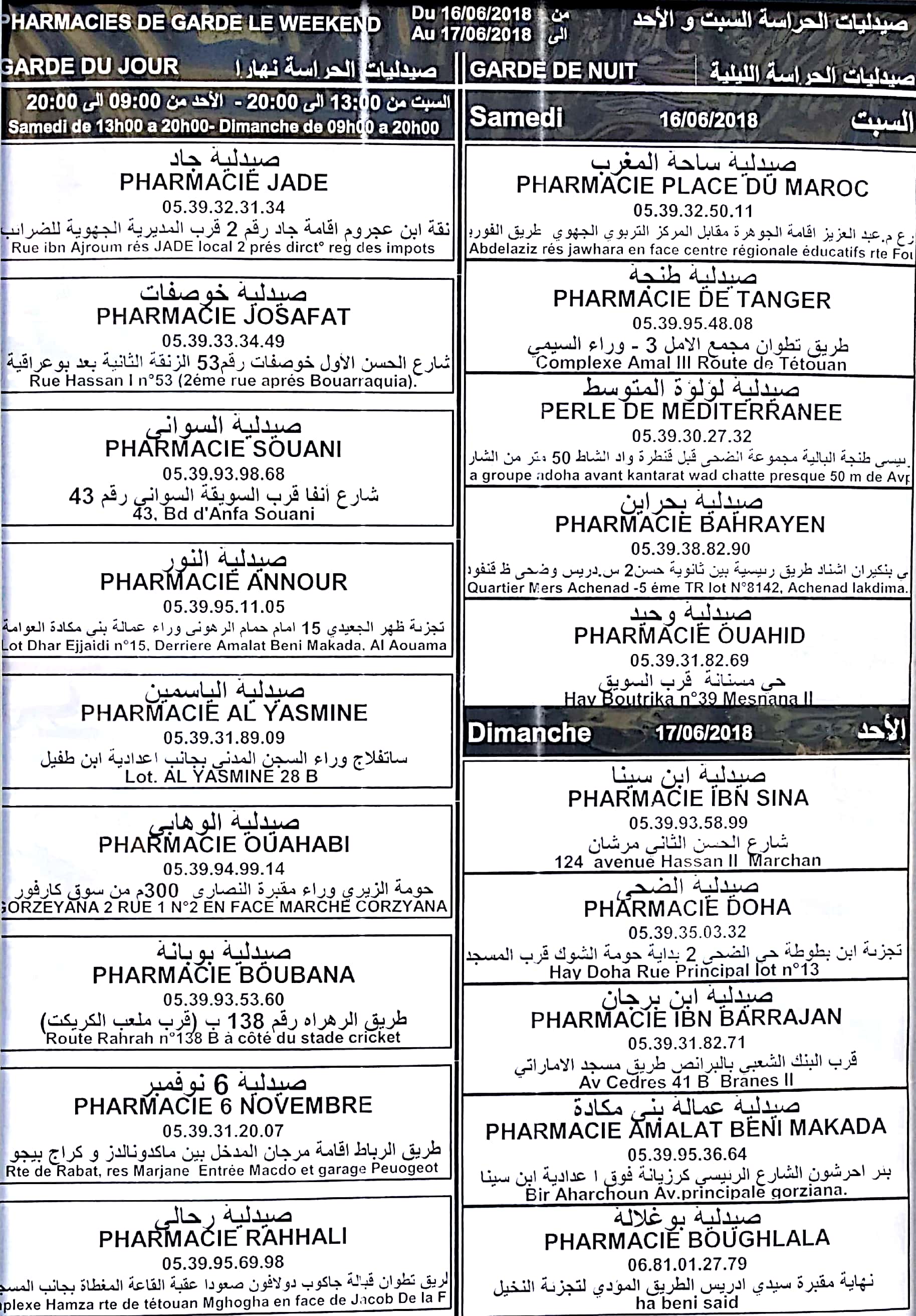 صيدليات الحراسة ليومي السبت والاحد بطنجة مكتب طنجة 16 يونيو, 2018 في إطار الخدمات التي تقدمها صحيفتكم “الشمال بريس”، تعرض عليكم صيدليات الحراسة بمدينة طنجة ليومي السبت والاحد 16 و17 يونيو 2018. صيدليات طنجة : شاركه مع أصدقائك tweet